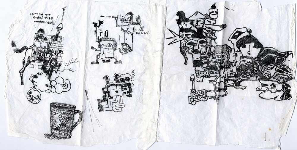 そのへんにある紙の上にさらっと絵を描くようなことに憧れて、紙ナプキンやレシート、フライヤーなどの裏によく描いた。