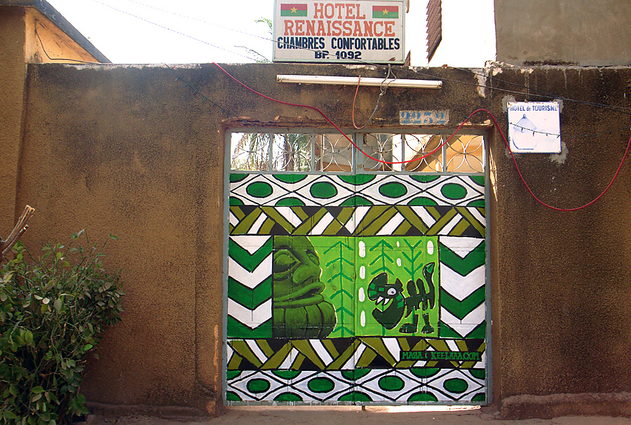 この旅をはじめてから、たくさん絵を描くようになり、ブルガリアから始めた壁画チャレンジは、シリア、イエメン、エジプトで自信をつけて、西アフリカのブルキナファソという国では、ホテルの入り口ゲートに描かせてもらうことに成功した。