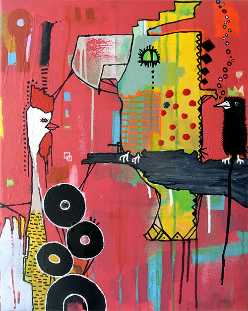2011 Cartoon abstract 2 admin-gomago 2019-12-01 490x400mm on Canvas, Acrylic + marker + spray 手元にはないがお気に入りの1枚。