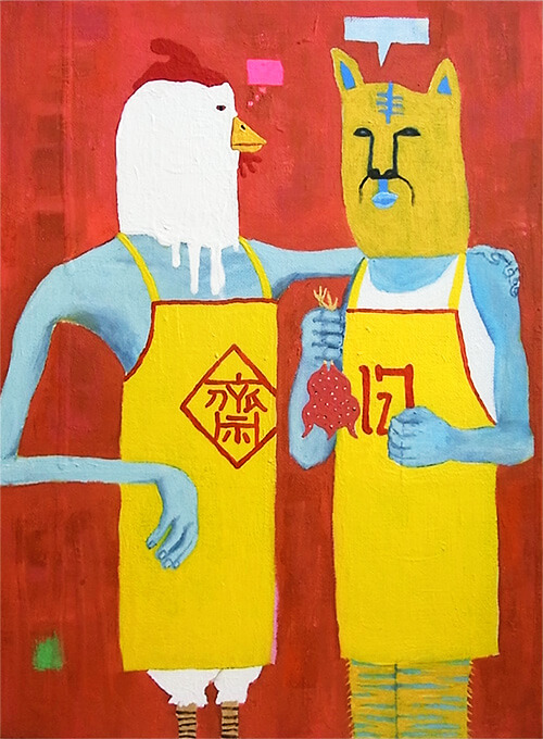 ギン・ジェー期間に鶏肉を料理しようとする虎男とそれを見つけた鶏男