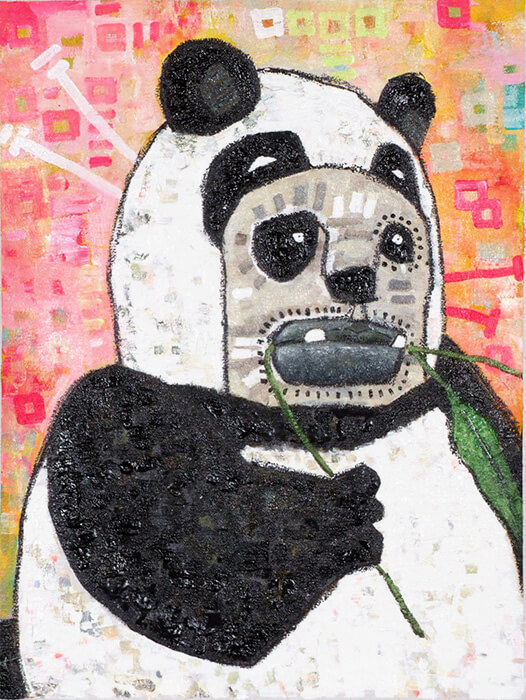 笹の葉をかじるパンダの皮を被った男