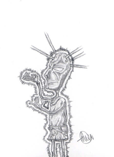 この頃は、ポストカードに描いていて、どういった経緯かは忘れてしまったが、たまったポストカードを恵比寿の洋服や雑貨を売っている店に飾らせてもらい、その店で売るオリジナルのT-shirtsデザインもやらせてもらった。はじめての展示と作品でお金を稼いだ経験になった。