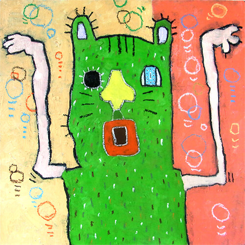 45x45cm wood, Mixed media : Oil, oil pastel