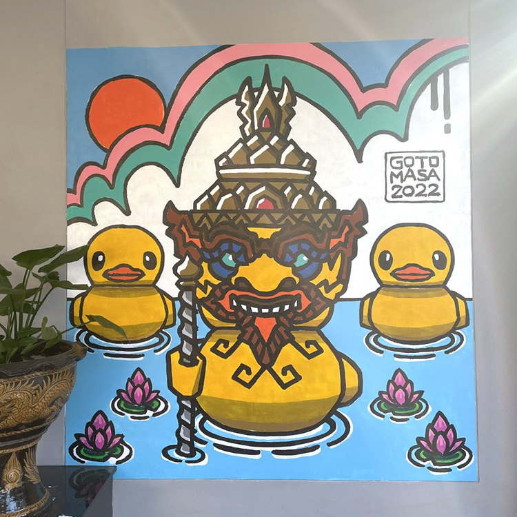 ウドンタニでチムチュム屋の壁画を終えた後に泊まっていたアパートの壁に描けることになって、改めてウドンタニを訪れて。