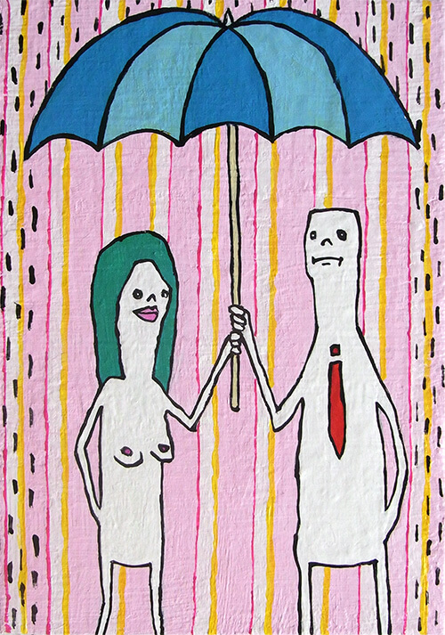 雨の下で